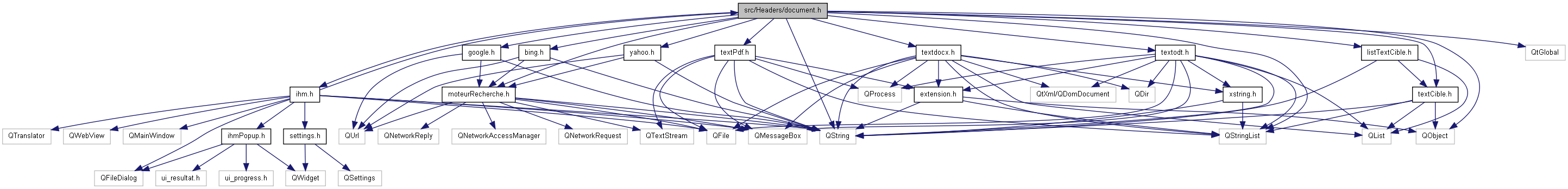#include <QString>#include "moteurRecherche.h"#include "ihm.h"#include "google.h"#include "yahoo.h"#include "bing.h"#include "listTextCible.h"#include "textCible.h"#include "textdocx.h"#include "textPdf.h"#include "textodt.h"#include <QObject>#include <QStringList>#include <QtGlobal>