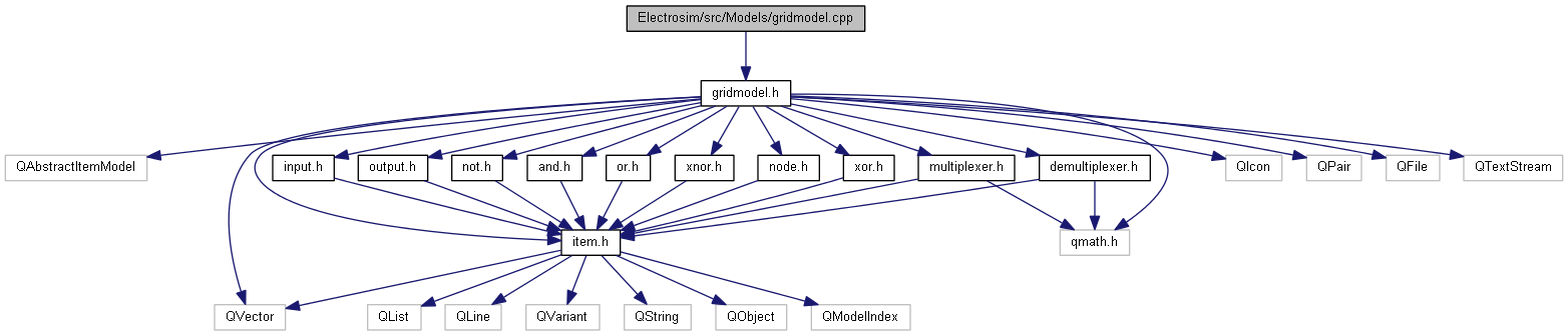 Graphe des dépendances par inclusion de gridmodel.cpp: